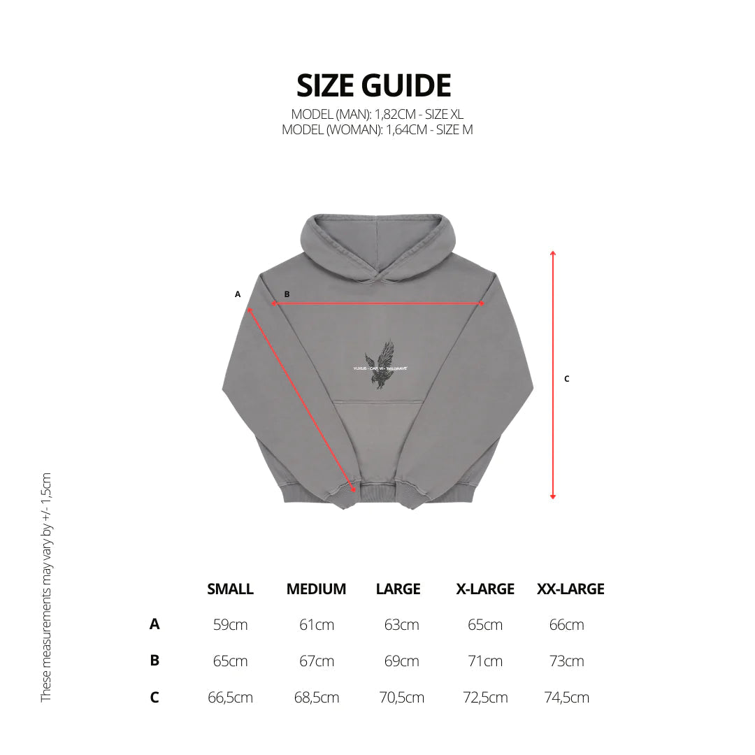 Made out of 100% cotton, 450gsm. Washed-effect & dropped shoulder. Serigraphy on the front part and on the back. Kangaroo pocket on front.